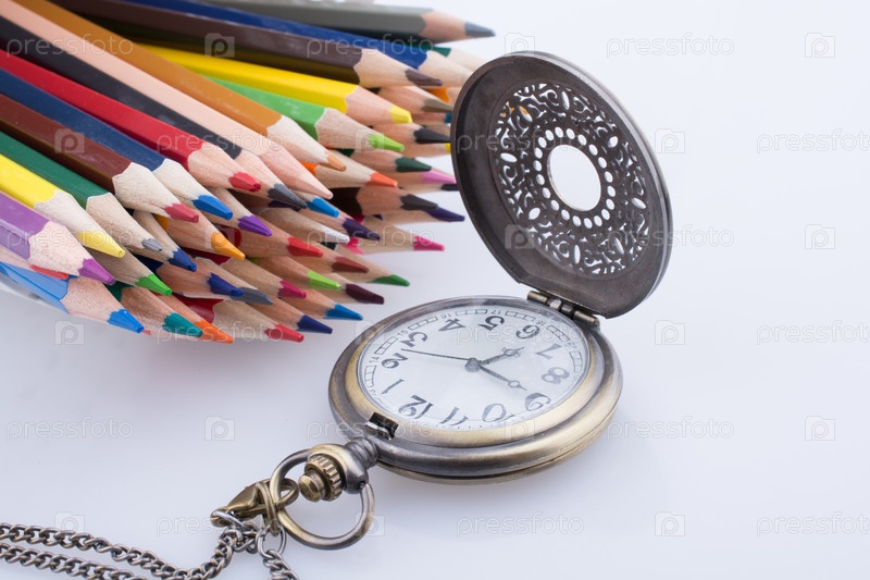 Карманные часы и цветные карандаши