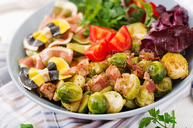 Брюссельская капуста с беконом и салатом