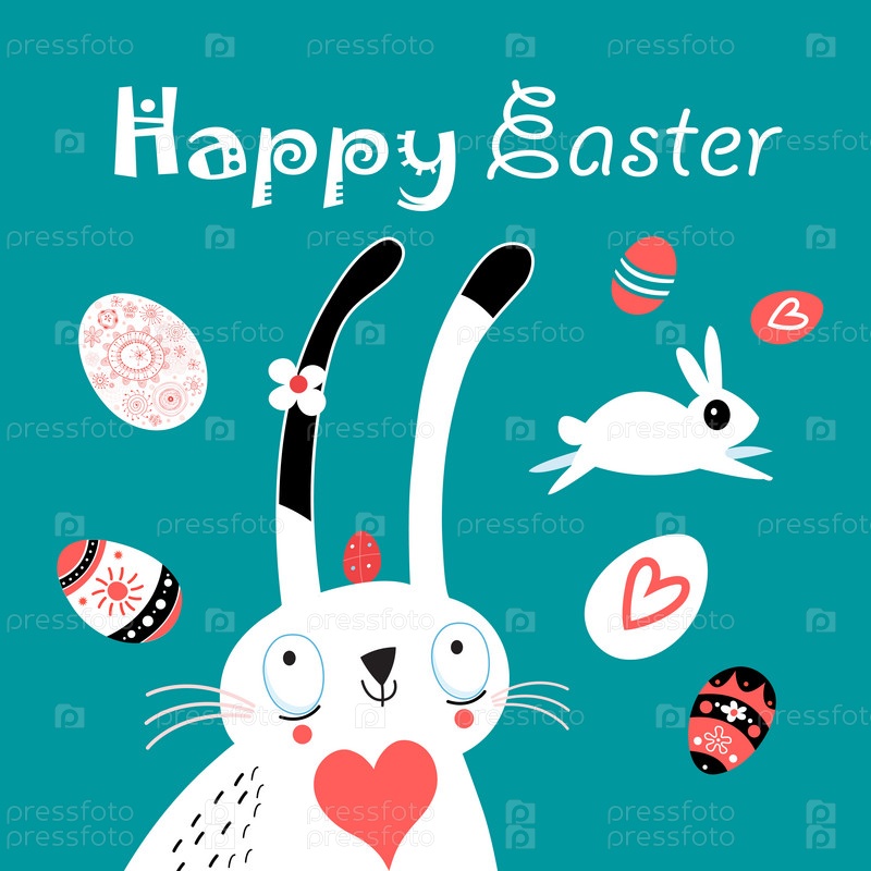Пасхальная открытка с яйцами и кроликом