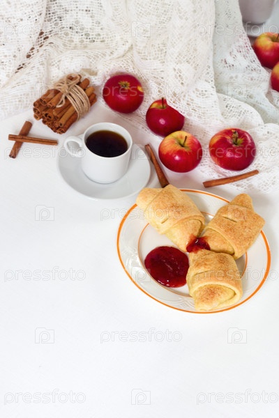 Традиционный французский завтрак с кофе и круассанами