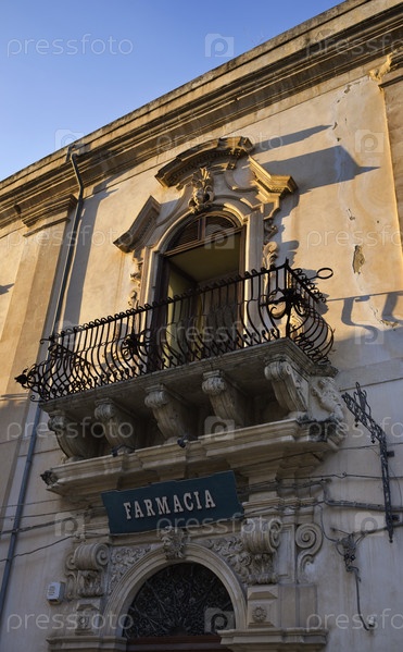 Италия, Сицилия, Шикли (провинция Рагузы), здание в стиле барокко, старый балкон