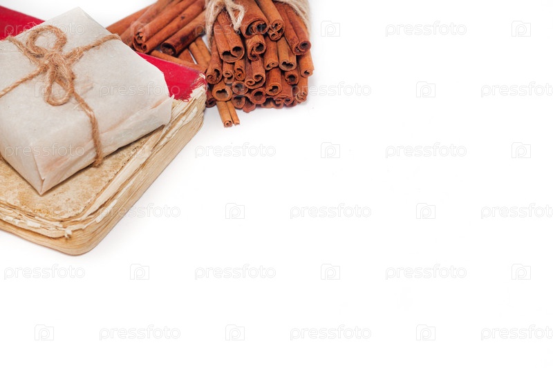 Книги и подарочные коробки на белом фоне