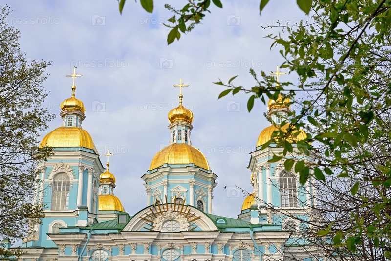 Купола Свято-Николаевского морского собора весной в Санкт-Петербурге