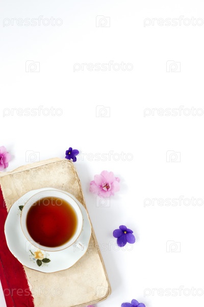 Романтический фон с чашкой чая