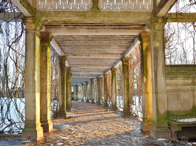 Пергола Екатерининского парка в зимний период. Пушкин, Царское Село, Санкт-Петербург