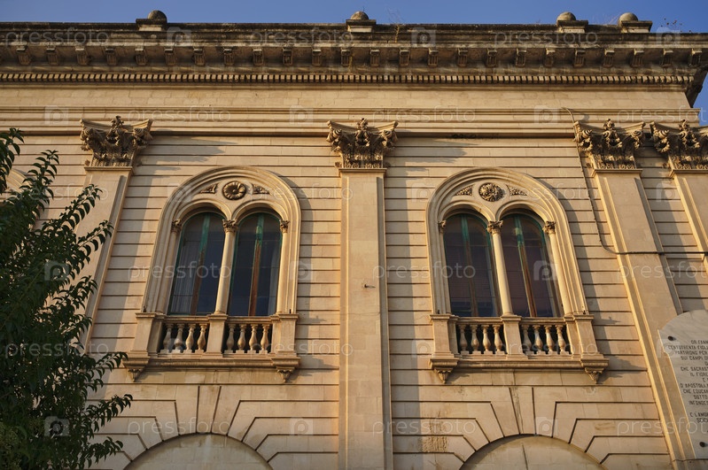 Италия, Сицилия, Шикли (провинция Рагузы), фасада здания городской ратуши на закате