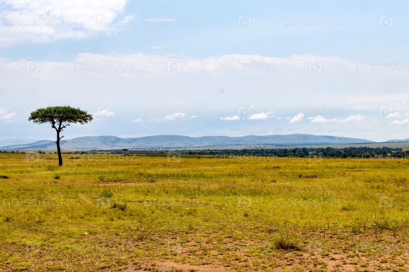 Саванна и холмы Масаи Мара парка на северо-западе Кении