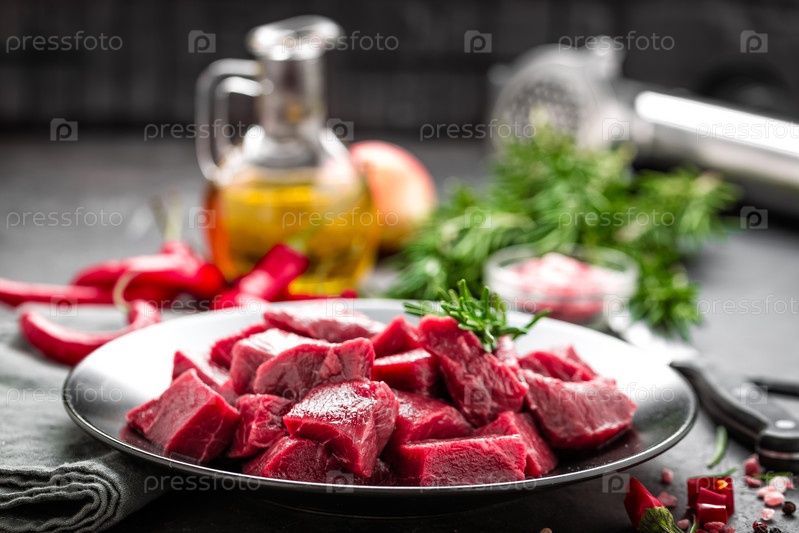 Сырое нарезанное мясо говядины
