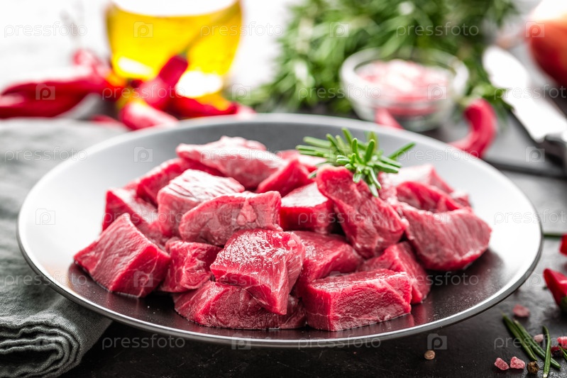 Сырое нарезанное мясо говядины