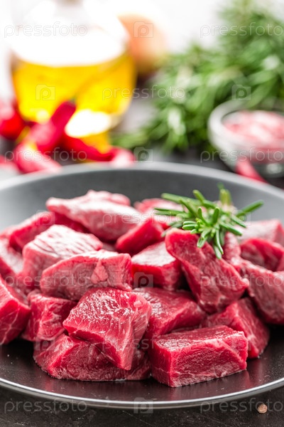 Сырое нарезанное мясо говядины