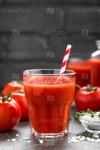 Свежий томатный сок в стакане