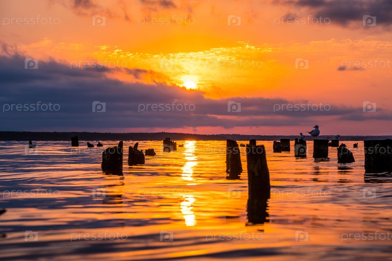 Красочные небо и вода в озере Палиастоми утром