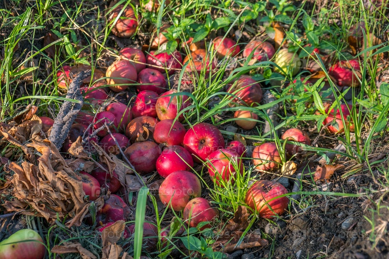 Гнилые яблоки на земле в саду
