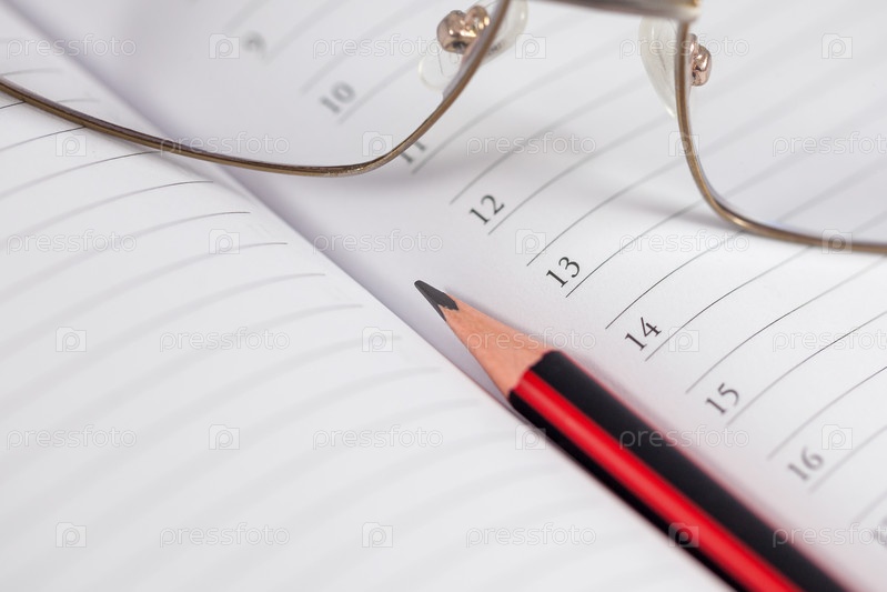 Карандаш и очки на блокноте