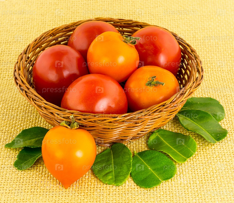 Помидоры в плетеной корзине