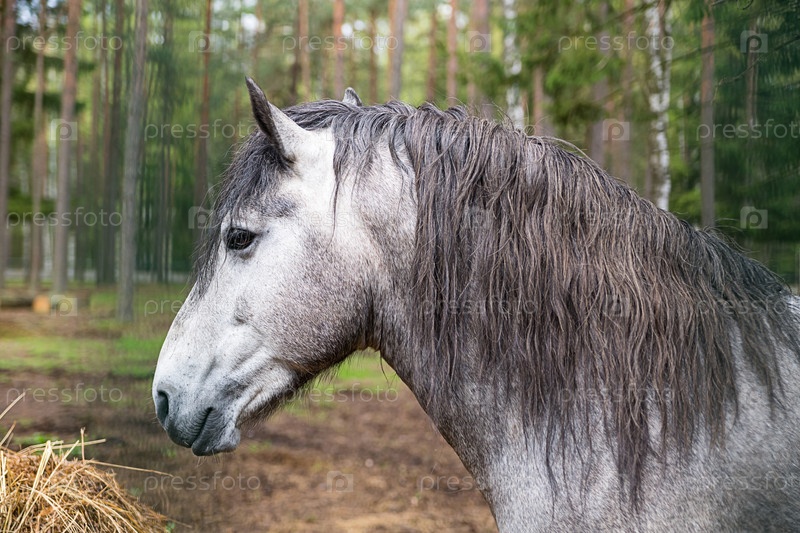 Серый конь с длинной гривой
