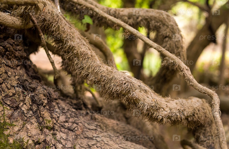 Корни старого дерева, покрытые мхом