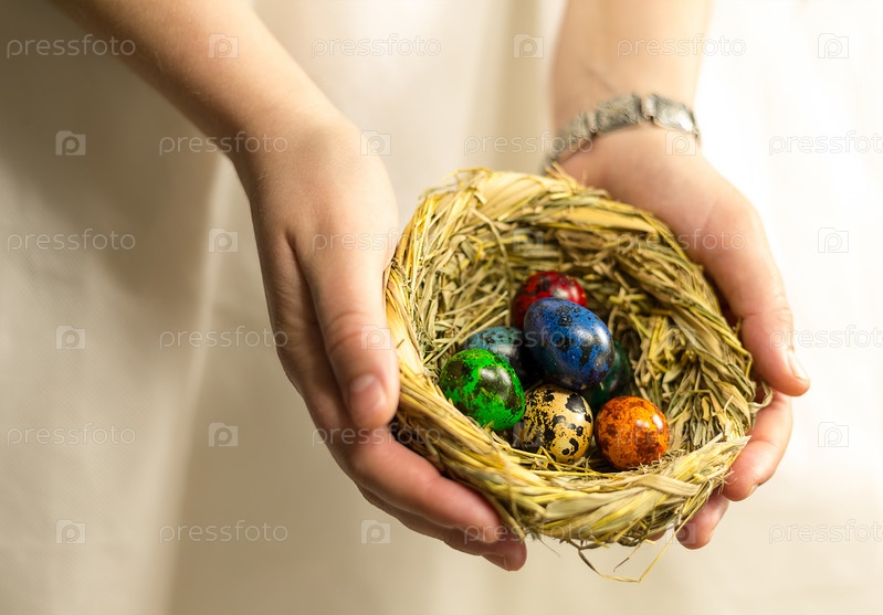 Гнездо с окрашенными яйцами