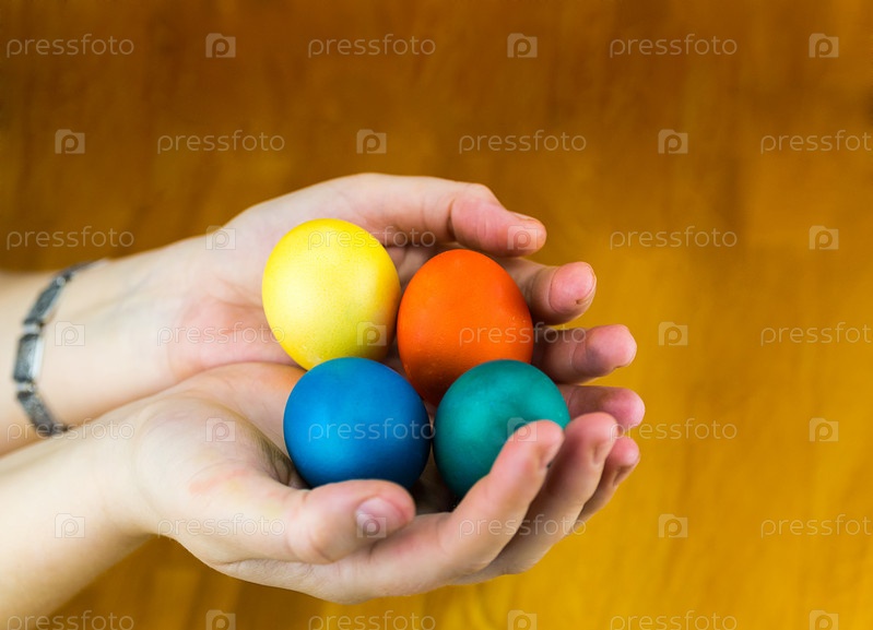 Крашеные яйца в ладонях