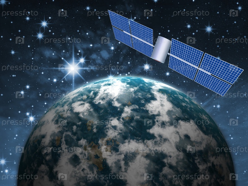 Телекоммуникационный спутник, транслирующий научные данные, в пространстве