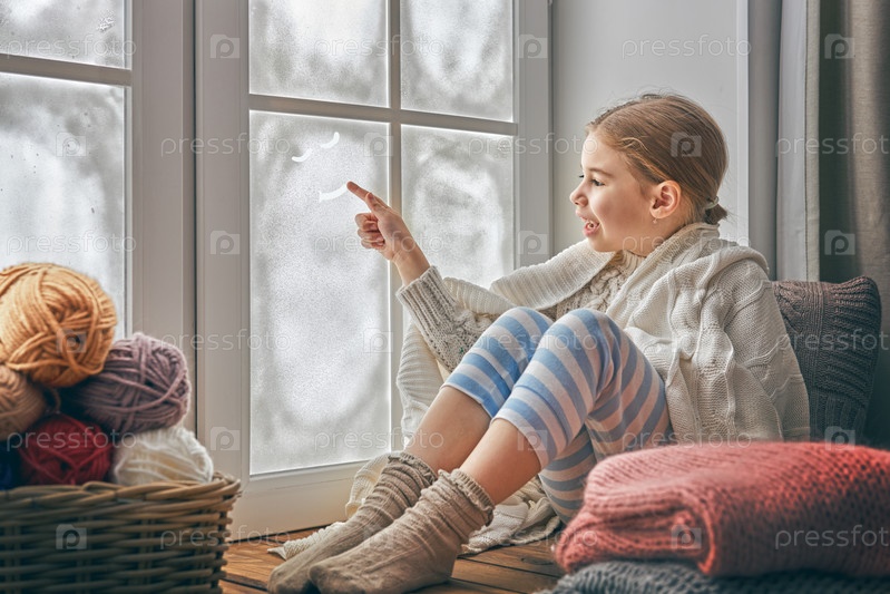 Девочка сидит у окна
