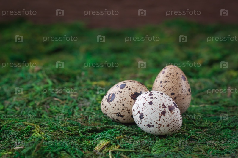 Перепелиные яйца на зеленом фоне