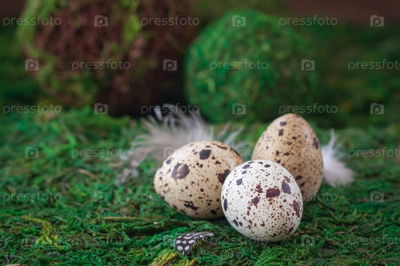 Перепелиные яйца на зеленом фоне