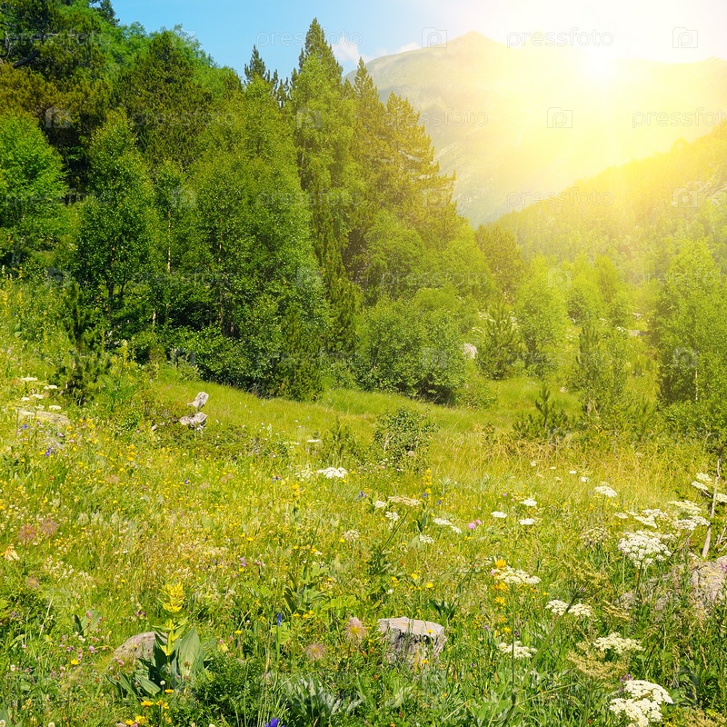 Красивый горный пейзаж и солнце