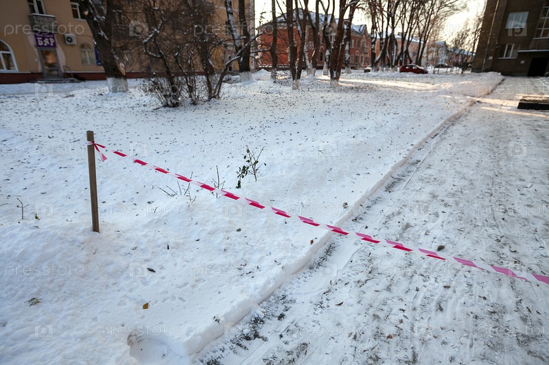 Ограждающая лента. Проход запрещен уборка снега с крыш