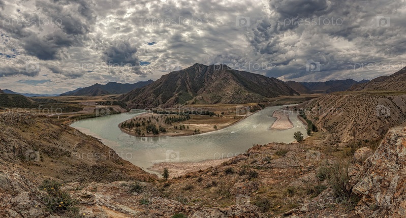 Горный Алтай, Священное мест Чуй Оозы. Слияние рек Чуя и Катунь. осенний горный пейзаж