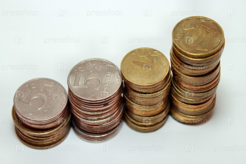 Стопки десяти и пятирублевых монет