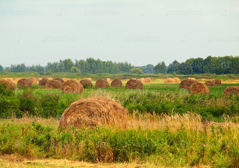 Поле со стогами убранного сена
