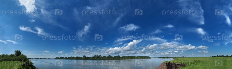 Панорамный вид на реку с глубоким синим небом летним днем
