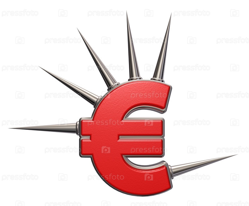 Символ евро с шипами на белом фоне - 3d иллюстрация