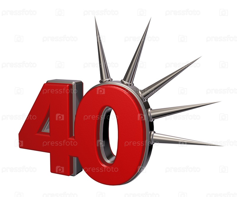Число 40 с металлическими шипами на белом фоне - 3d иллюстрация