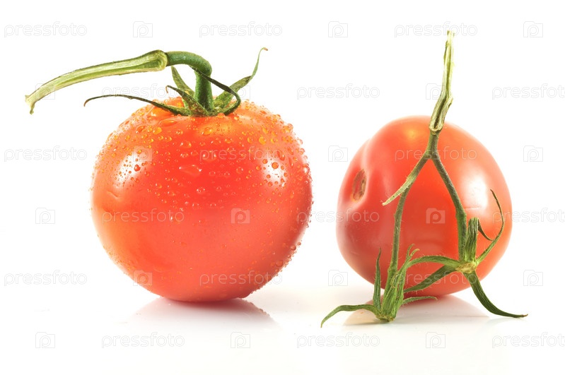 Веточка и помидор на белом фоне