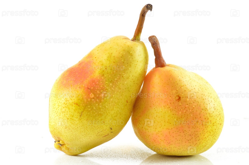 Желтые груши на белом фоне