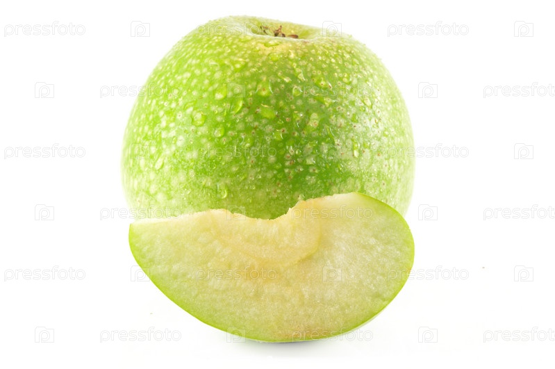 Зеленое яблоко на белом фоне