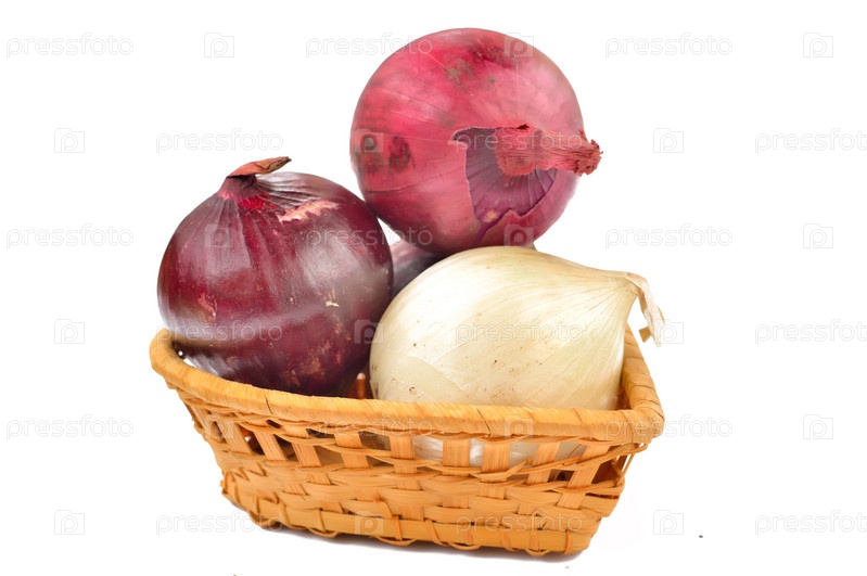 Белый и красный лук на белом фоне
