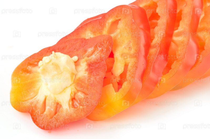 Нарезанный болгарский перец на белом фоне