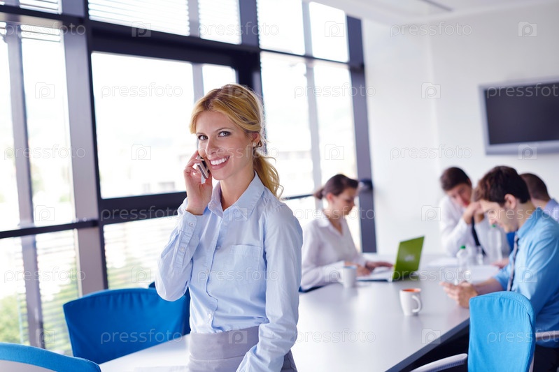 Деловая женщина с ее сотрудники на заднем плане в офисе