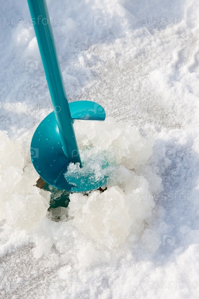 Сверление лунки с помощью ледобура