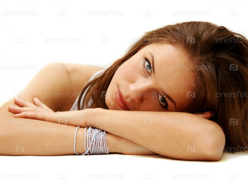 Молодая девушка на белом фоне