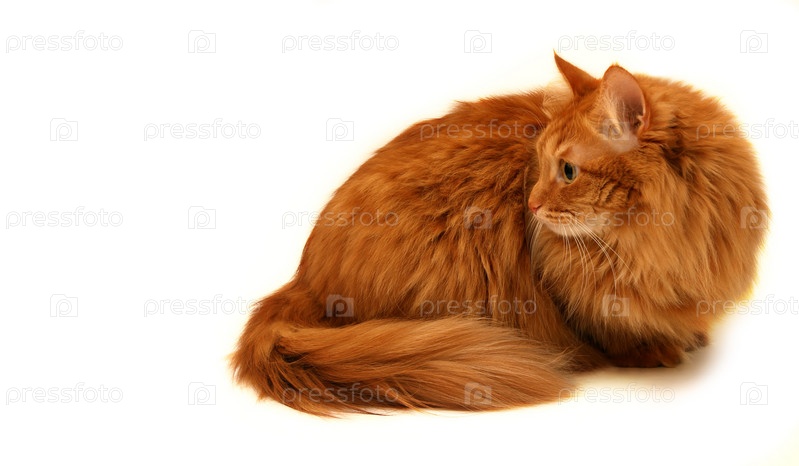 Рыжий кот на белом фоне