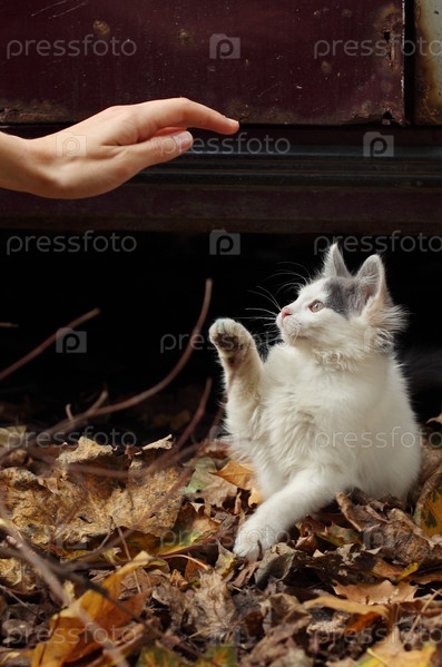 Игра с котенком в осеннем парке