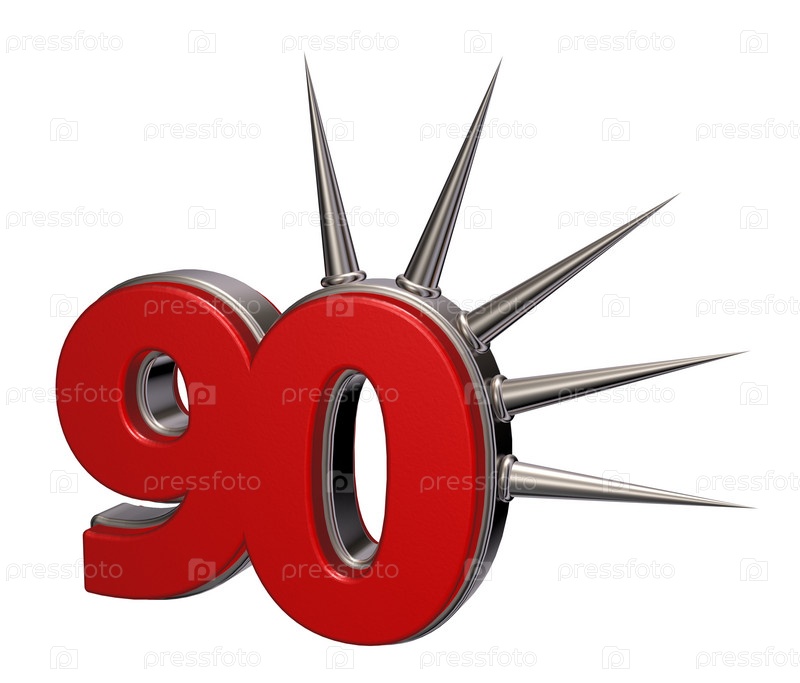 Число девяносто с шипами на белом фоне. 3D иллюстрация