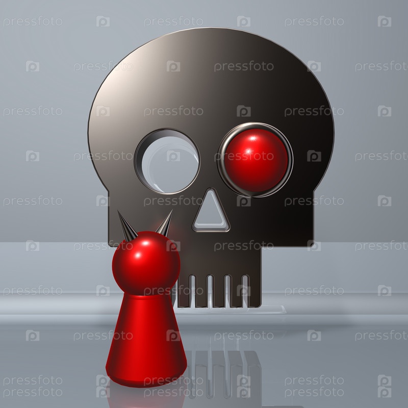 Дьявол и абстрактный череп - 3d иллюстрация