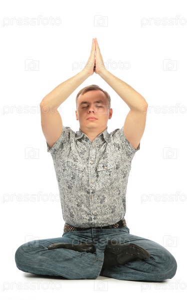 Молодой человек занимается йогой