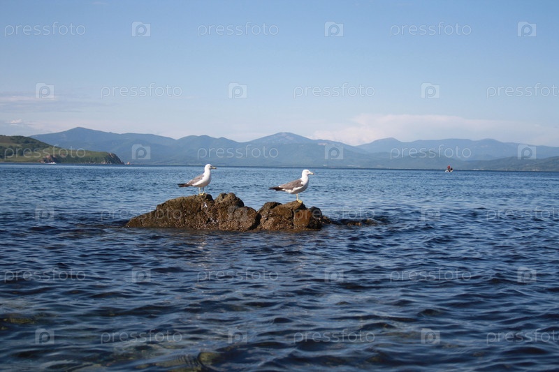 Чайки отдыхают на камне