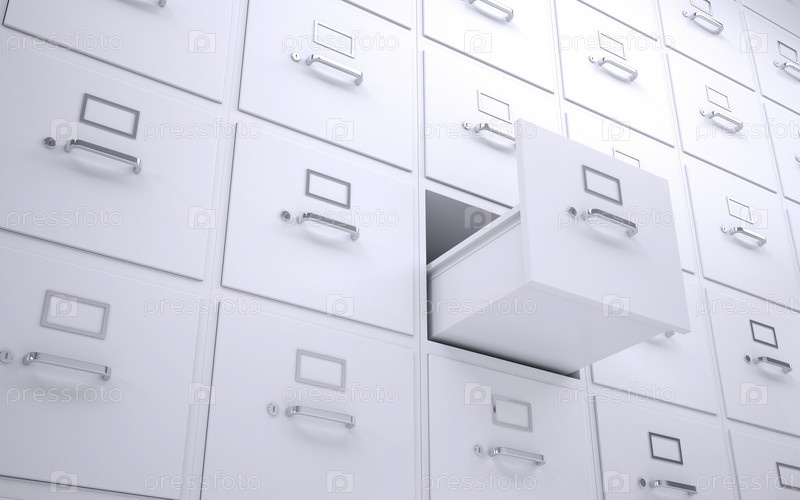 Книжный шкаф с выдвижными ящиками. Один ящик открыт